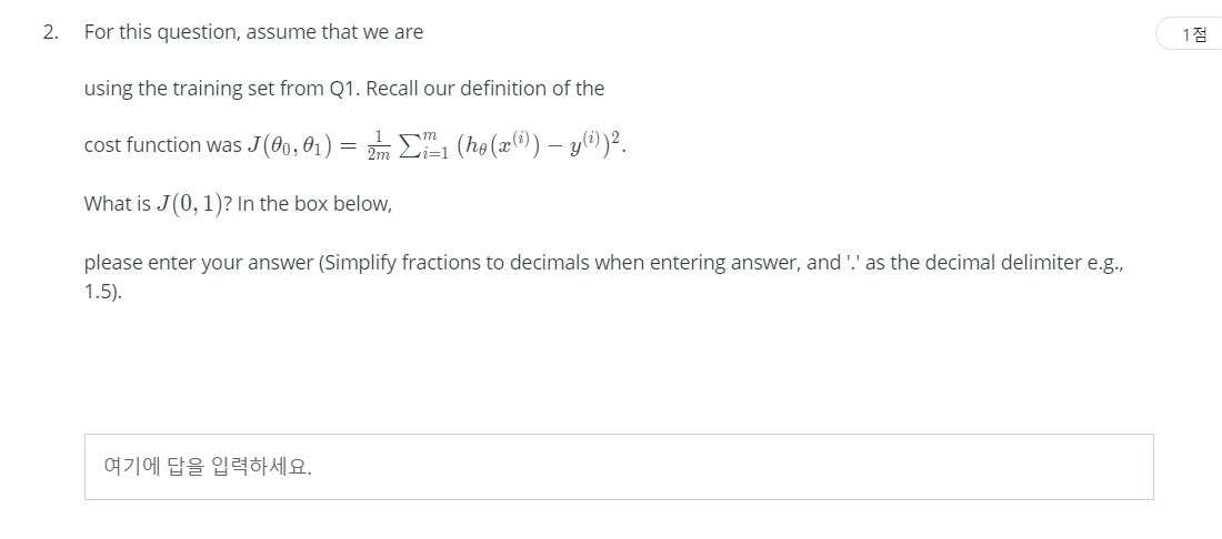 We can measure the accuracy of our hypothesis function by using acost function. This takes an average (actually a fancier version of an average) of all the results of the hypothesis with inputs from x's compared to the actual output y's.
