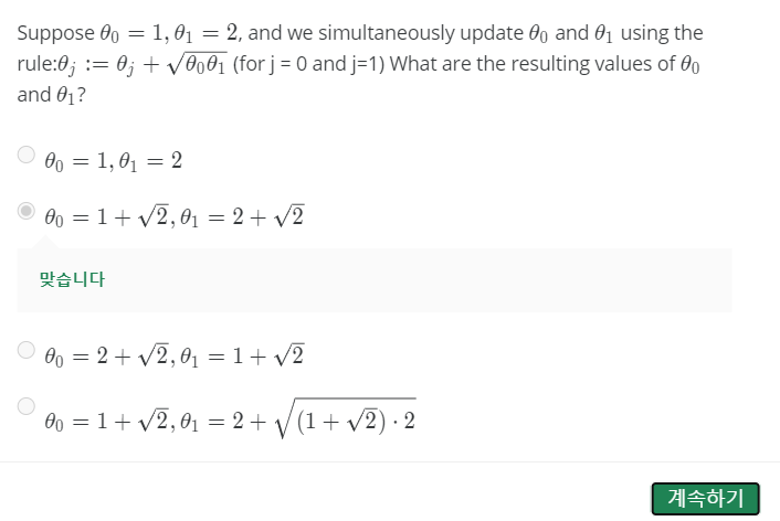 The point of all this is that if we start with a guess for our hypothesis and then repeatedly apply these gradient descent equations, our hypothesis will become more and more accurate.