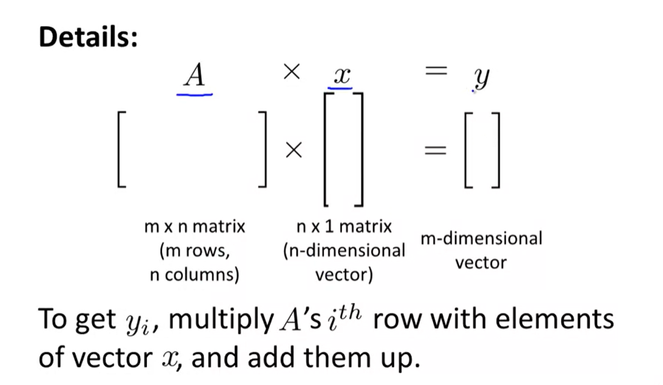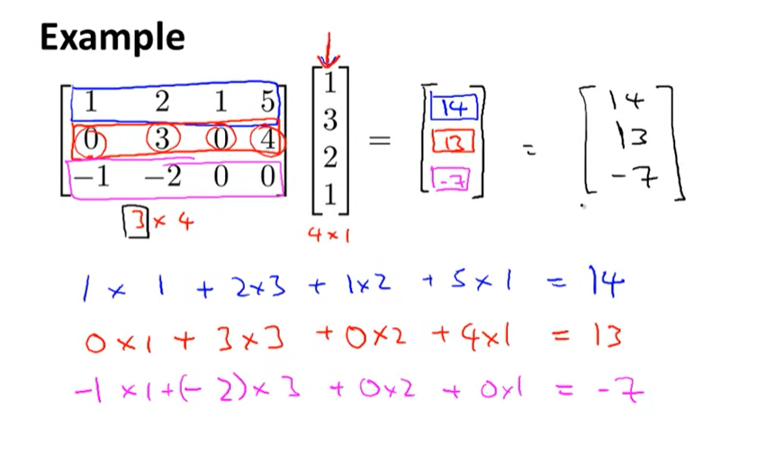 Anm x n matrixmultiplied by ann x 1 vectorresults in anm x 1 vector.