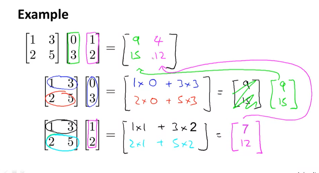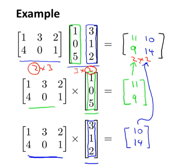 We multiply two matrices by breaking it into several vector multiplications and concatenating the result