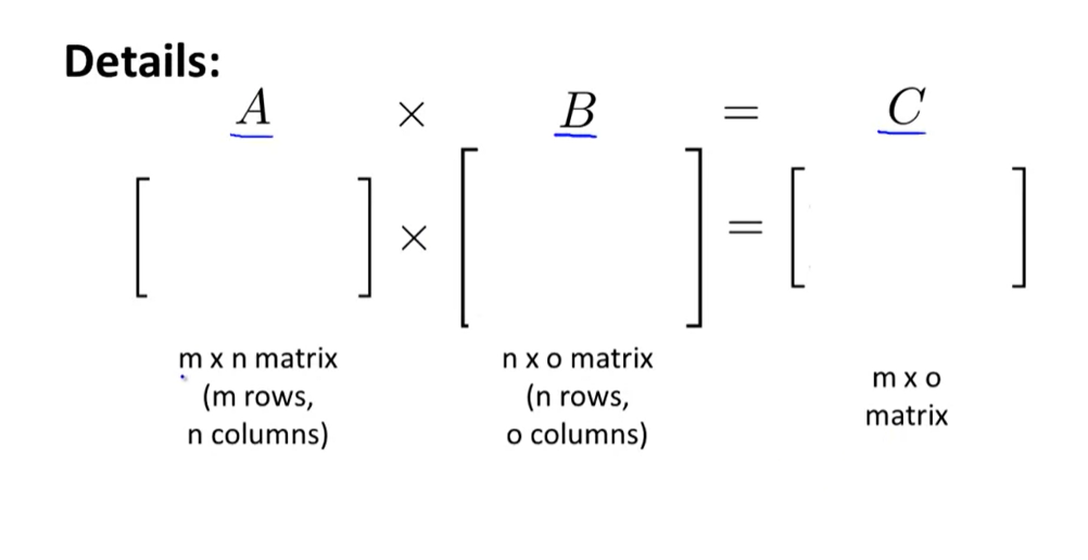 To multiply two matrices, the number ofcolumnsof the first matrix must equal the number ofrowsof the second matrix.