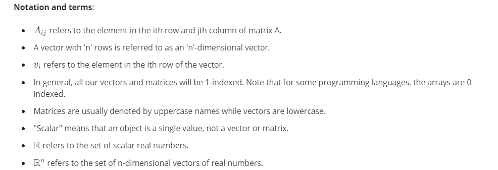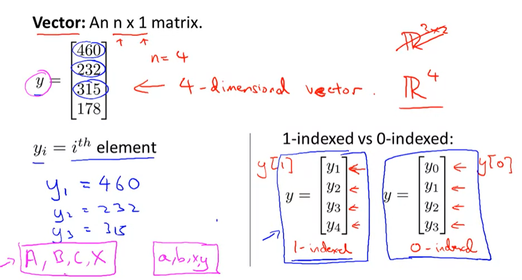 In general, all our vectors and matrices will be 1-indexed. Note that for some programming languages, the arrays are 0-indexed.