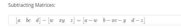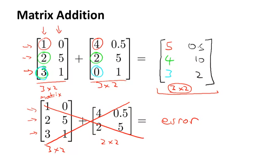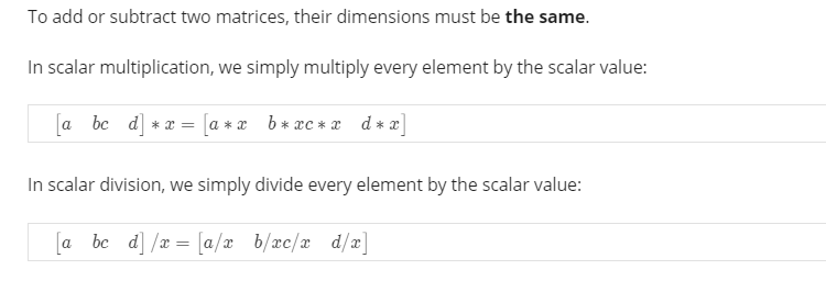 In scalar multiplication, we simply multiply every element by the scalar value:To add or subtract two matrices, their dimensions must bethe same.
