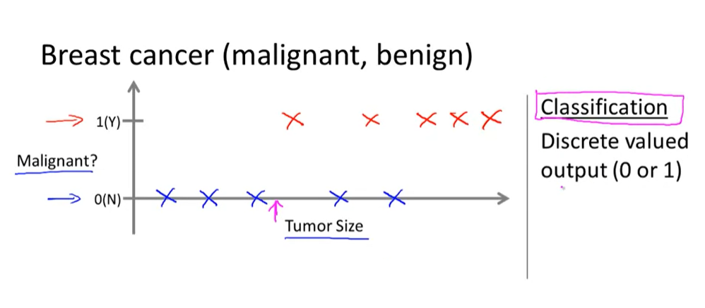 Supervised learning problems are categorized into "regression" and "classification" problems. In a regression problem, we are trying to predict results within a continuous output, meaning that we are trying to map input variables to some continuous function. In a classification problem, we are instead trying to predict results in a discrete output. In other words, we are trying to map input variables into discrete categories. Here is a description on Math is Fun on Continuous and Discrete Data.