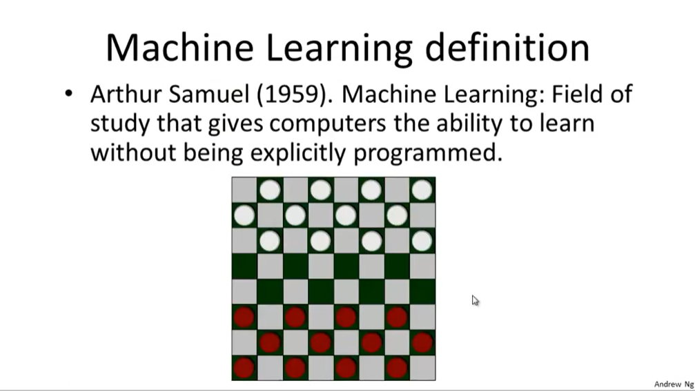 Two definitions of Machine Learning are offered. Arthur Samuel described it as: "the field of study that gives computers the ability to learn without being explicitly programmed." This is an older, informal definition.
