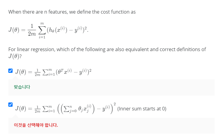 Note:[7:25 -\theta^TθTis a 1 by (n+1) matrix and not an (n+1) by 1 matrix]