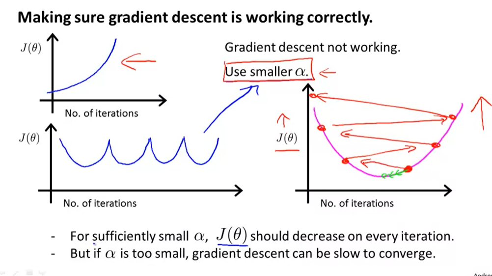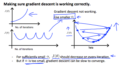 It has been proven that if learning rate α is sufficiently small, then J(θ) will decrease on every iteration.