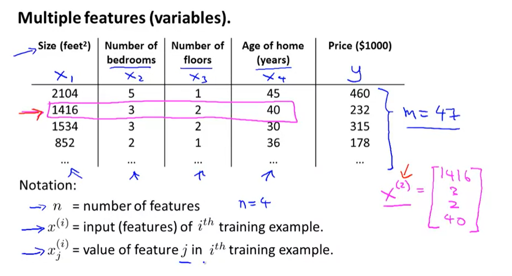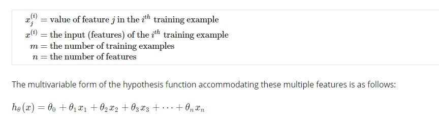 x(i)jx(i)mn=value of feature j in the ith training example=the input (features) of the ith training example=the number of training examples=the number of features