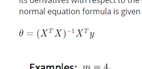 Gradient descent gives one way of minimizing J. Let’s discuss a second way of doing so, this time performing the minimization explicitly and without resorting to an iterative algorithm. In the "Normal Equation" method, we will minimize J by explicitly taking its derivatives with respect to the θj ’s, and setting them to zero. This allows us to find the optimum theta without iteration. The normal equation formula is given below: