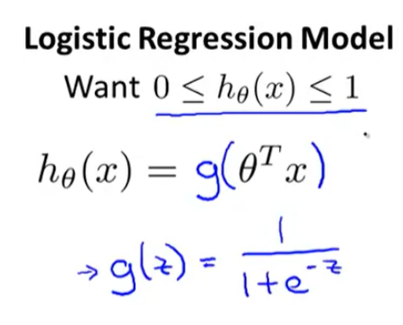 hθ(x)=g(θTx)z=θTxg(z)=11+e−z