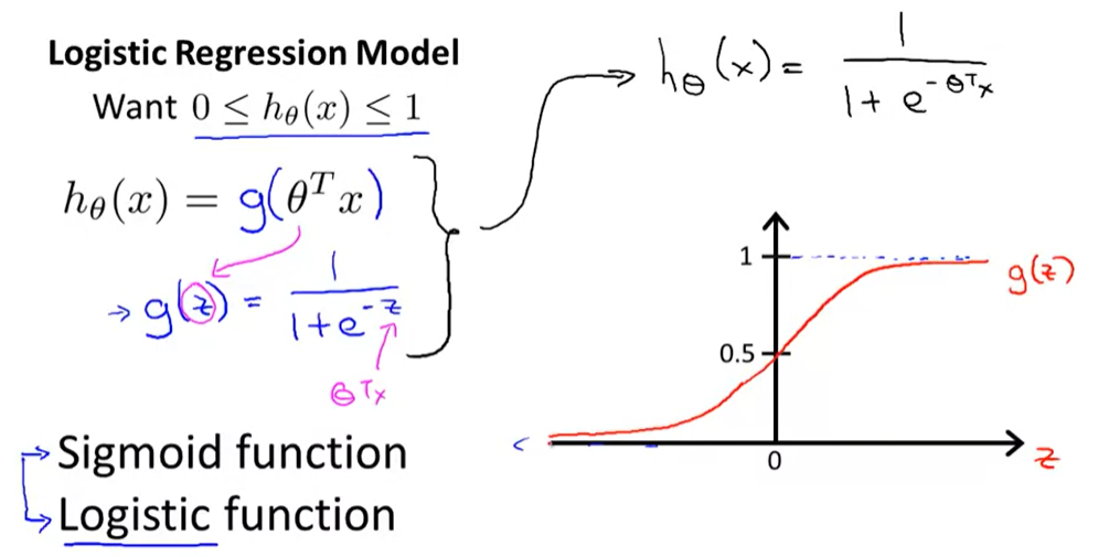 hθ(x)=g(θTx)z=θTxg(z)=11+e−z