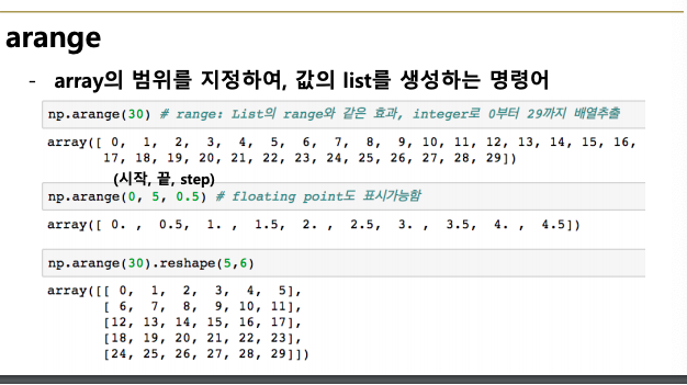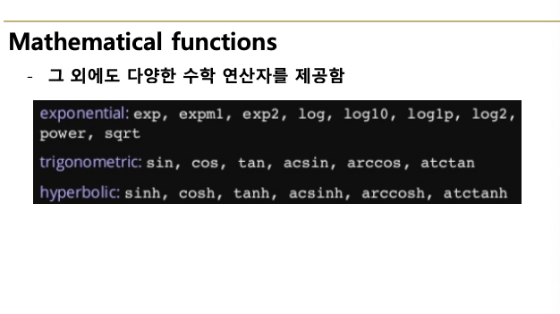 - 그 외에도 다양한 수학 연산자를 제공함 (np.something 호출)