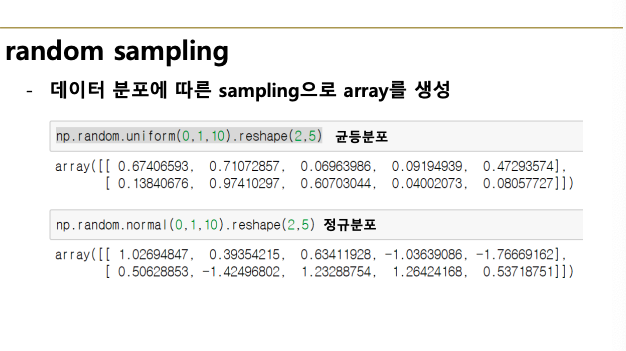- 데이터 분포에 따른 sampling으로 array를 생성