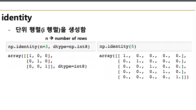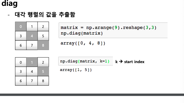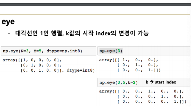 - 대각선인 1인 행렬, k값의 시작 index의 변경이 가능