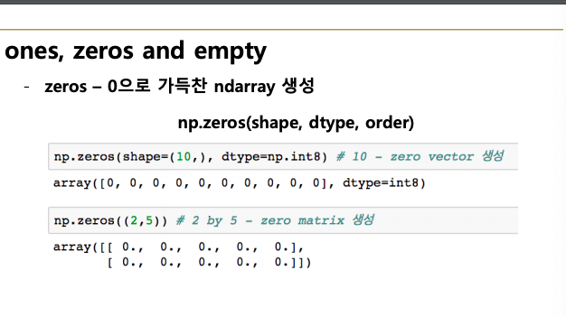 - empty – shape만 주어지고 비어있는 ndarray 생성