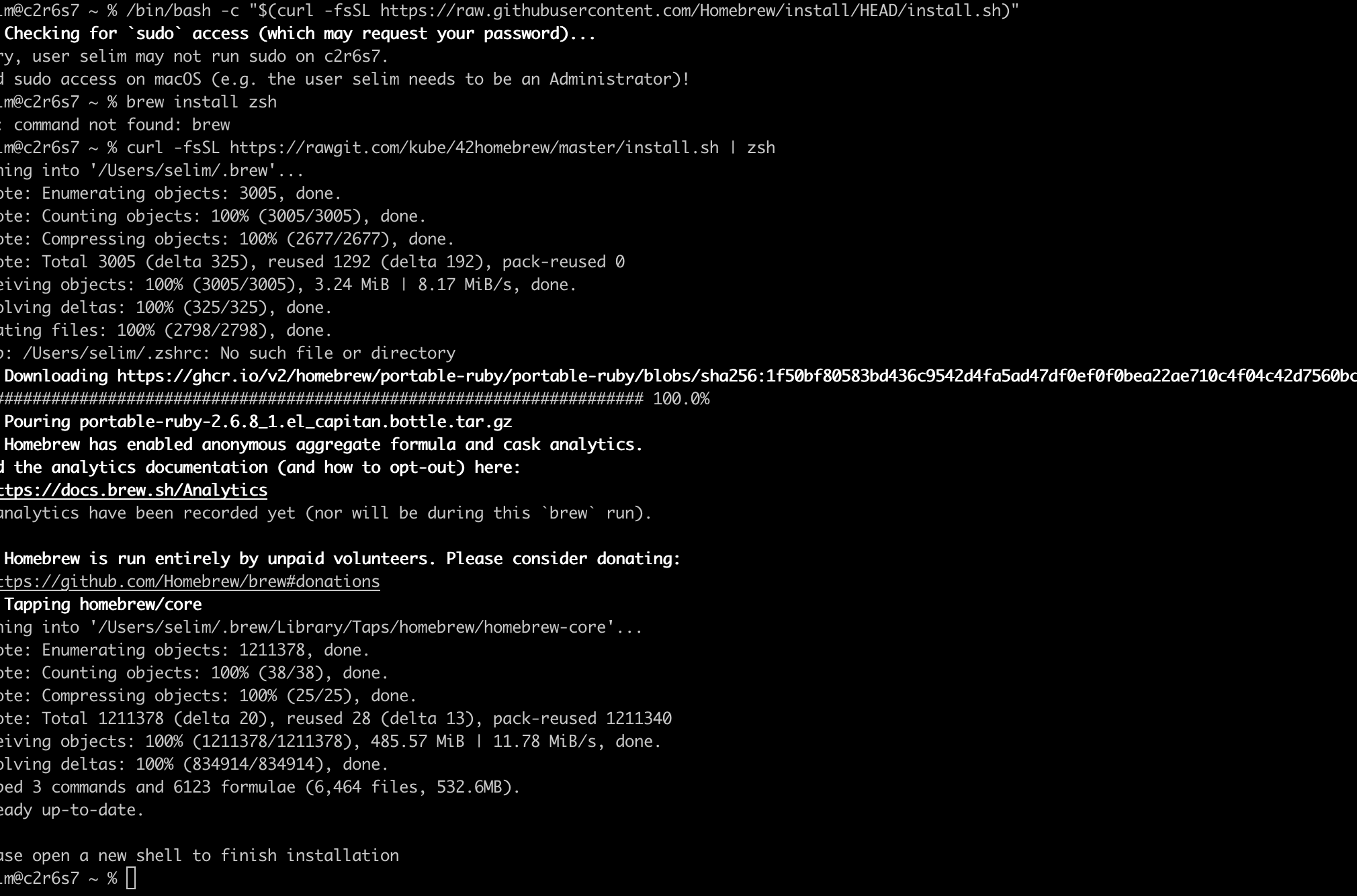 curl -fsSL https://rawgit.com/kube/42homebrew/master/install.sh | zsh