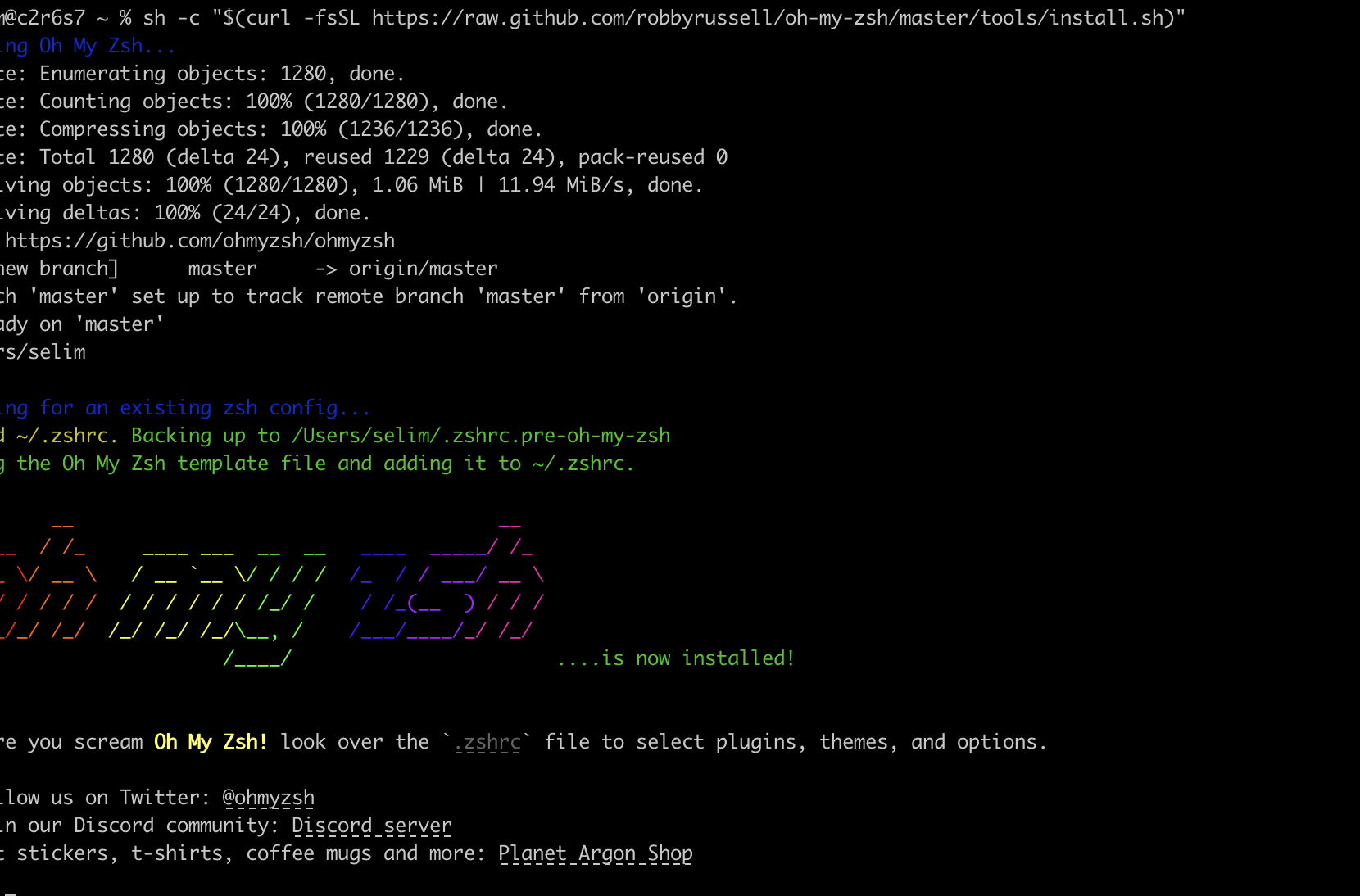 sh -c "$(curl -fsSL https://raw.github.com/robbyrussell/oh-my-zsh/master/tools/install.sh)"